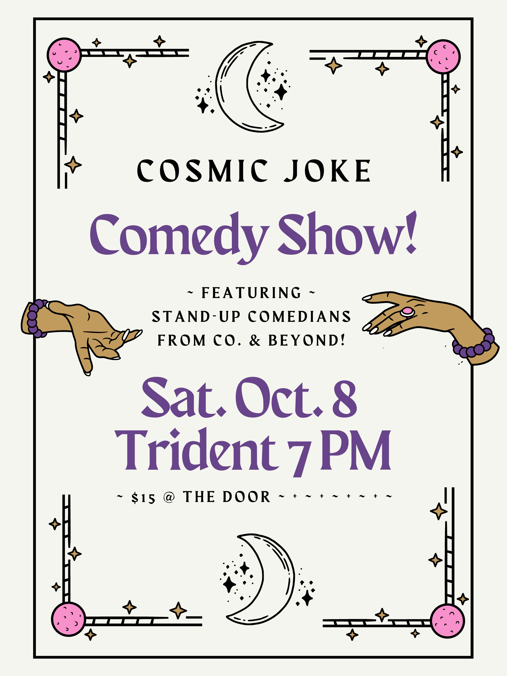 Cosmic Joke is a Curated Comedy Showcase featuring Stand-up Comedians from Colorado and beyond! $15 Cover