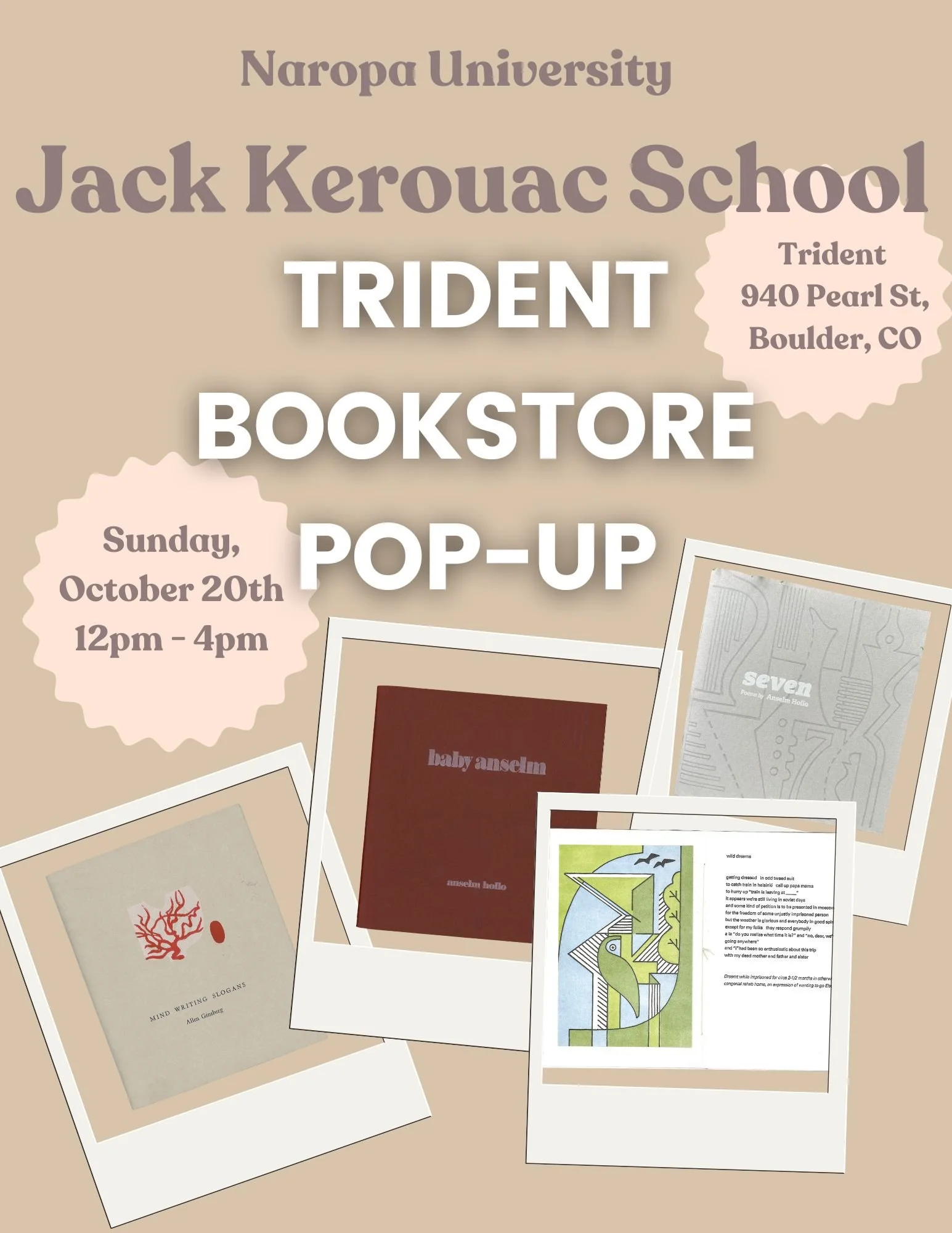 Join us for a one of a kind pop up book sale! The Jack Kerouac School of Disembodied Poetics will be selling rare and one of a kind publications from the Kavyayantra Press, the Harry Smith Print Shop, and other items from their archive. With over 50 years of press and publications, you can imagine some of the treasures in the archive.